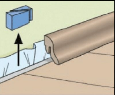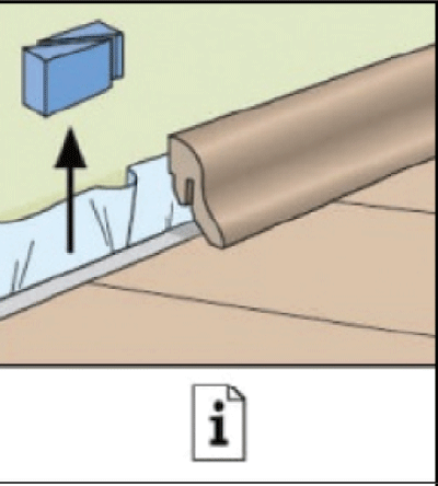 После настила пола, по нему сразу же можно ходить и проводиться отделочные работы. Это одно из существенных преимуществ напольного покрытия с замковой системой. Не следует прикреплять плинтус непосредственно к полу, исключая тем самым возможность естественного расширения или сжатия настила под плинтусом. В местах, где невозможно разместить профиль или плинтусы, температурный зазор следует заполнить эластичной мастикой.